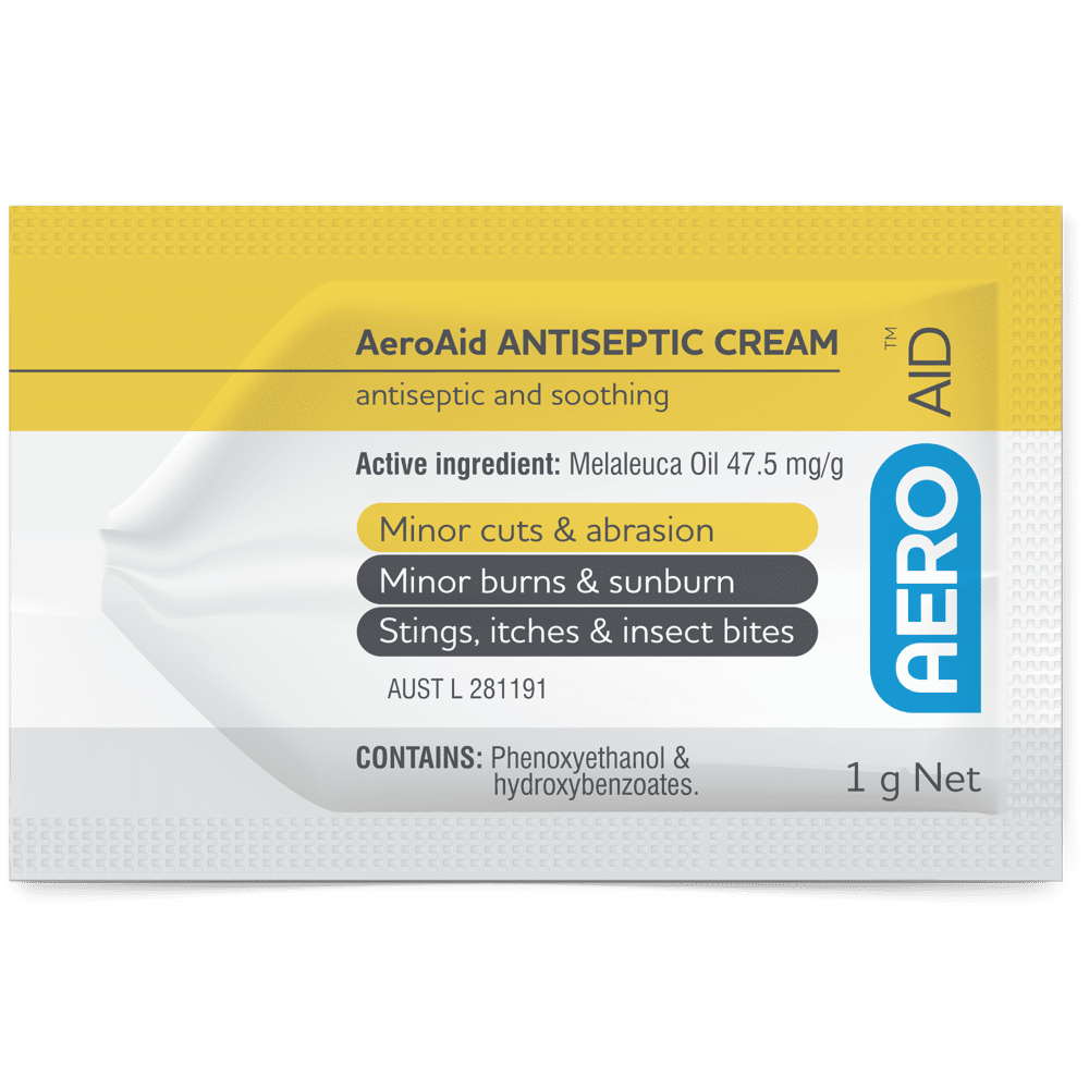 AeroAid Antiseptic satchets are designed to provide fast and effective relief from minor cuts and abrasions, minor burns, sunburn, insect bites, stings, and itches. Each satchet contains Melaleuca Oil 47.5 mg/g, Phenoxyethanol, and hydroxybenzoates, which work together to help prevent infection and promote healing. The antiseptic properties of the satchets make them an essential item for any first aid kit. To use, simply apply the contents of the satchet to the affected area 3 to 4 times a day. For minor burns, apply cold water first and then apply the cream later. However, for serious burns, seek medical advice immediately. If skin irritation occurs or the condition persists, discontinue use and consult a doctor. Store the satchets below 30C and keep out of reach of children. If symptoms persist, consult a healthcare practitioner. AeroAid Antiseptic satchets are a convenient and effective solution for minor skin irritations, making them a great addition to any first aid kit or outdoor kit.