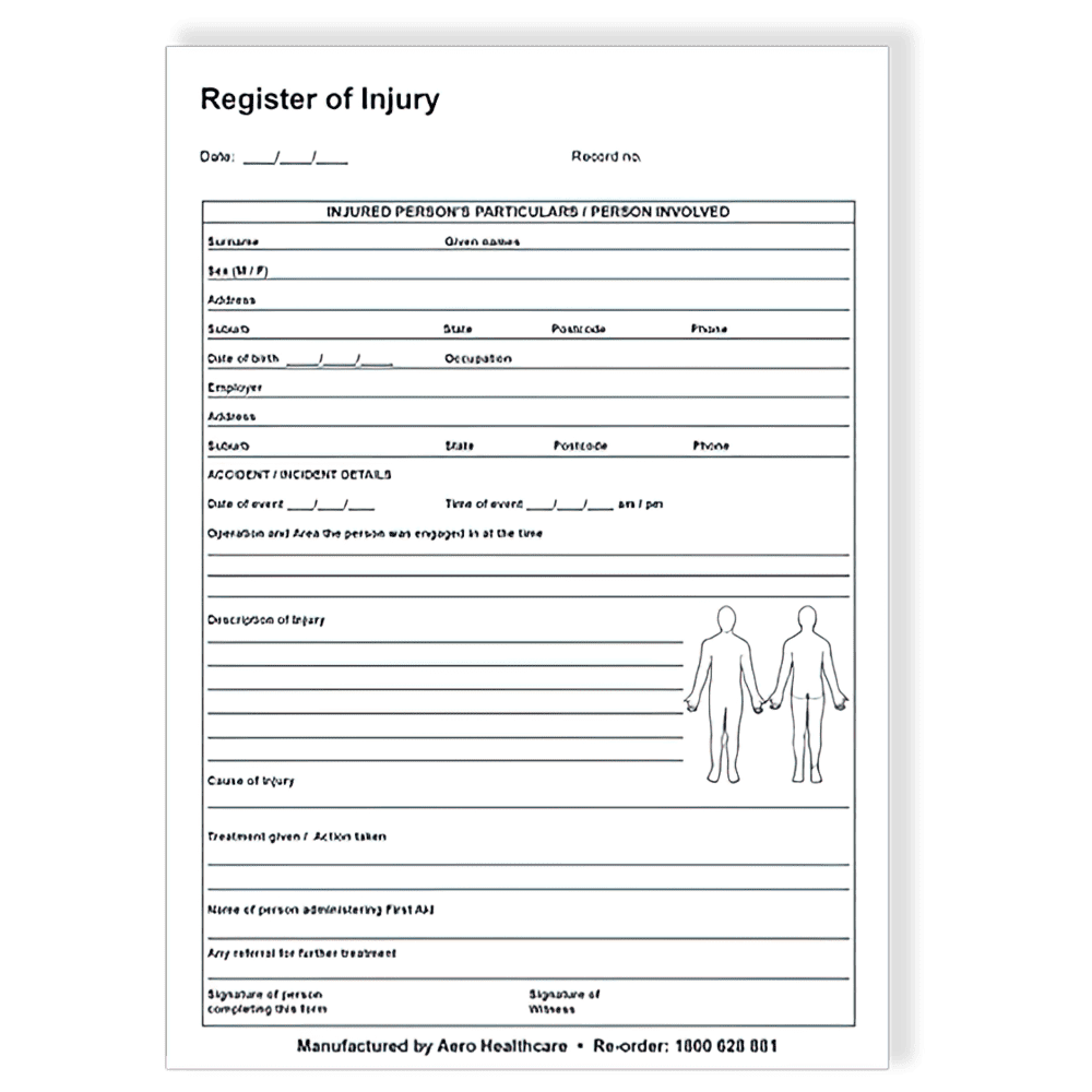 AEROSUPPLIES A5 Register of Injuries Duplicate Pad (25 pages)