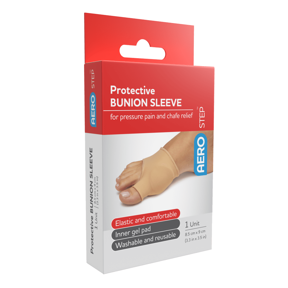 AeroStep™ Protective Bunion Sleeve is an elastic protective sleeve. The inner gel pad provides relief and protection in the bunion area. It’s designed to fit most types of footwear.