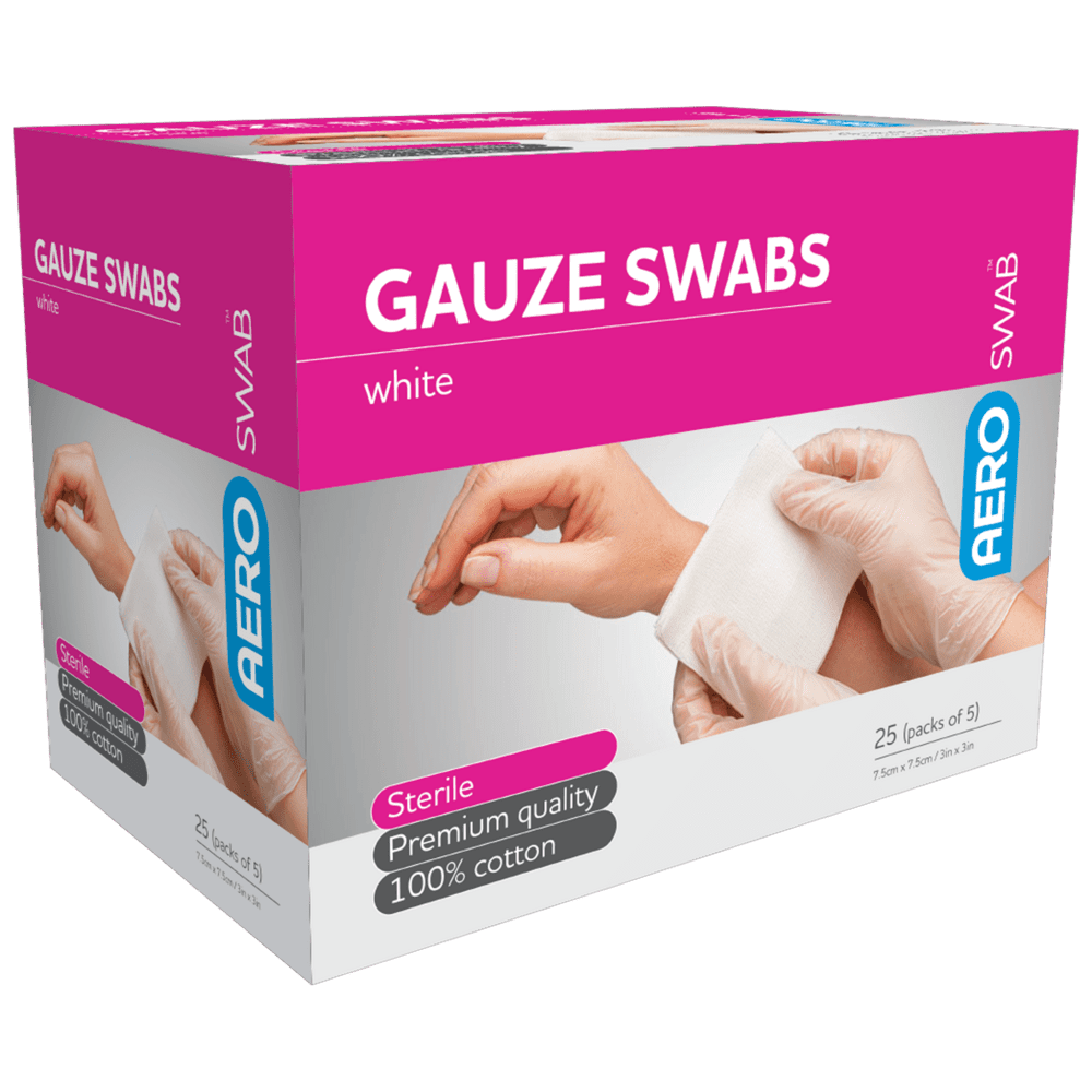 - AEROSWAB™ gauze swabs are also available in a sterile form for minimising infection risk when dressing clean wounds