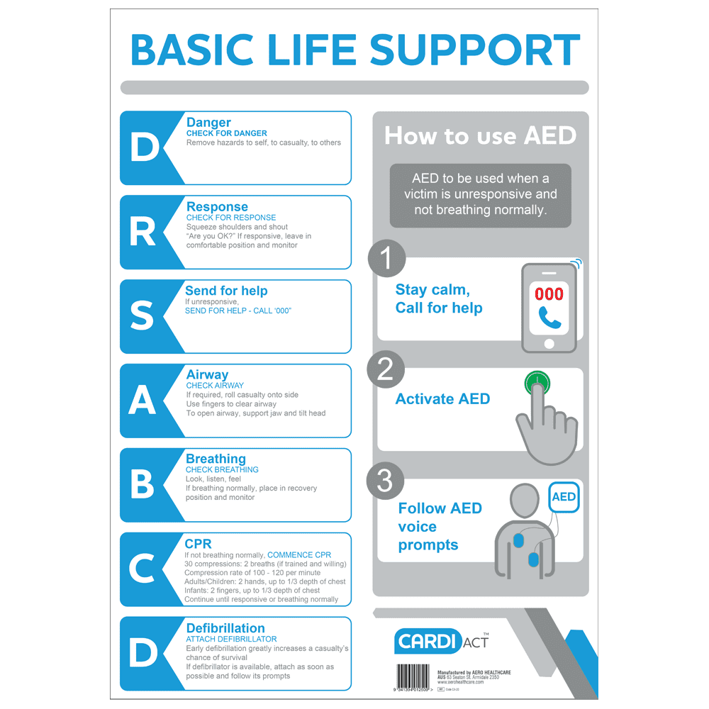 AED CPR Wall Chart A3