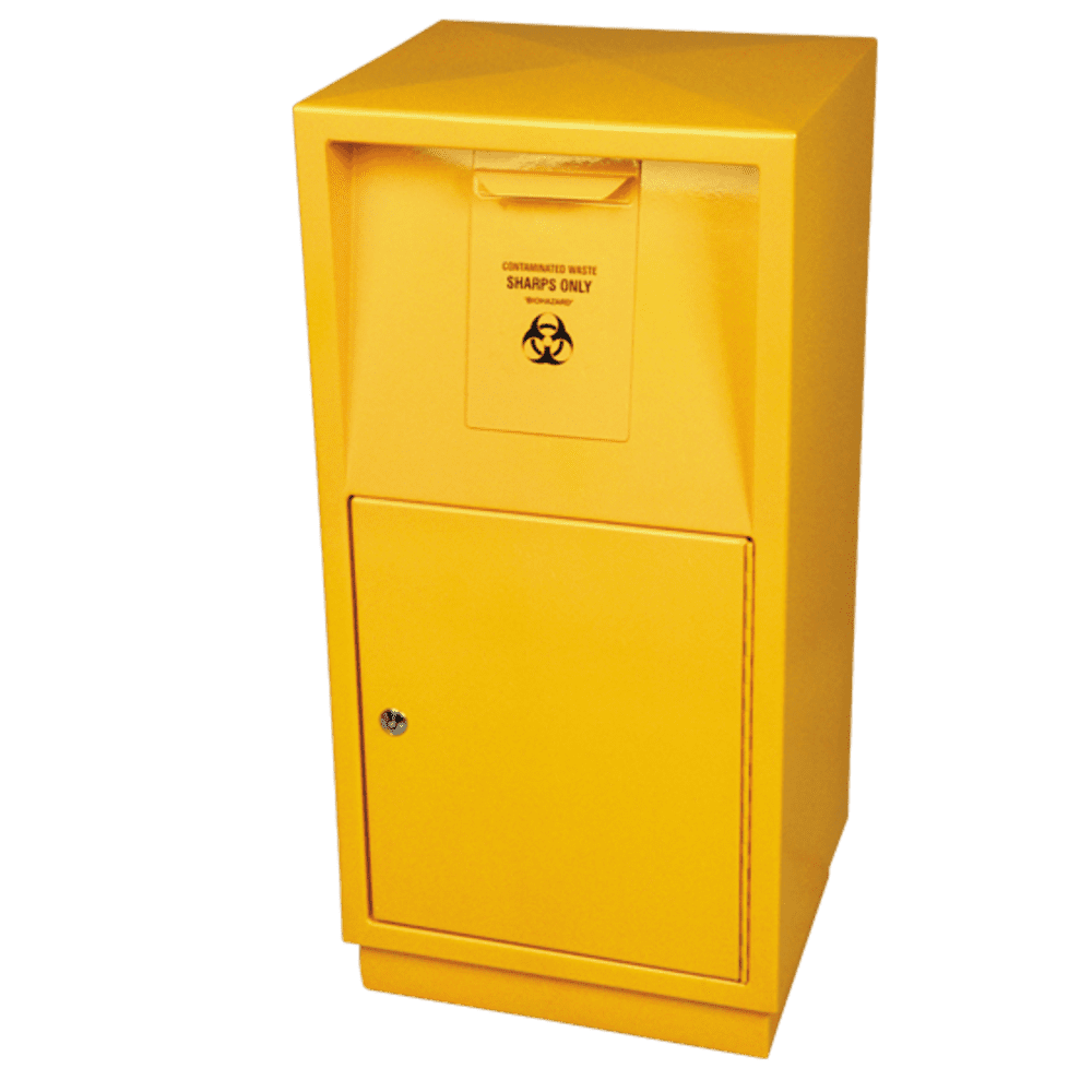 Sharps Disposal Containers are a durable polypropylene sharps disposal container for sharps and infectious or contaminated medical waste. Easy to use, simply insert waste and lock the lid down for secure containment. Available in a variety of sizes to suit your needs. Durable wire brackets and trolleys also available to suit units.